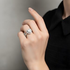 Celeste Heart Halo Silver Ring